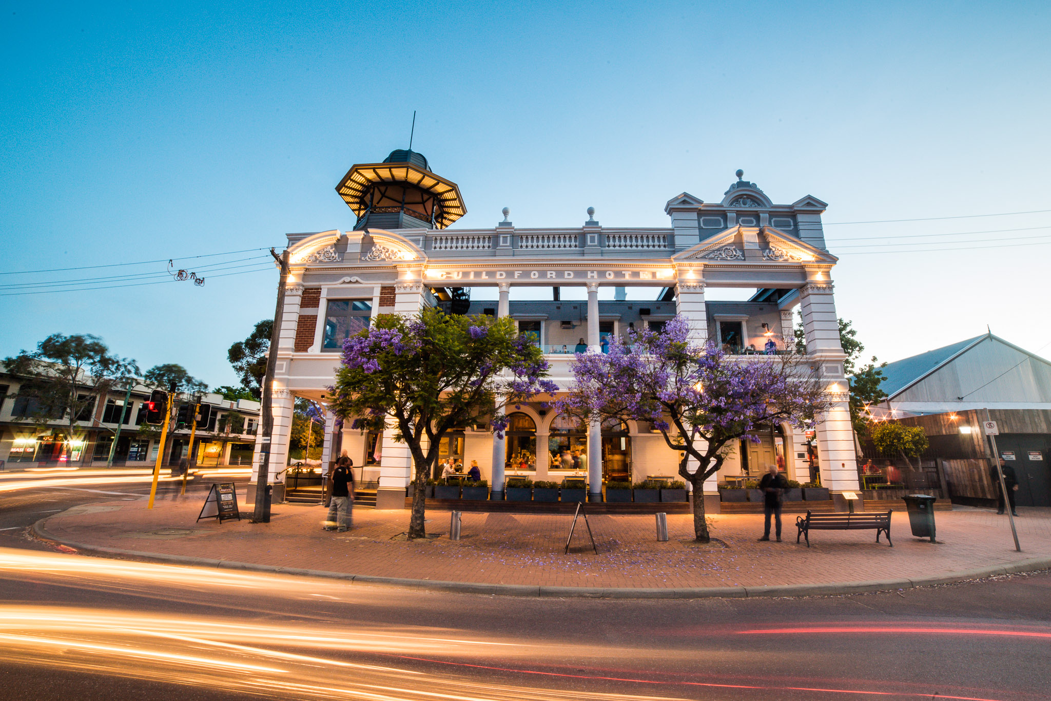Overlook old Guildford town from our level 1 James Street Verandah, 1915. Construction of this gorgeous façade and belvedere addition to the original hotel was completed in 1915. Take a step back in time – the original 1915 spiral stair case remains on show too!